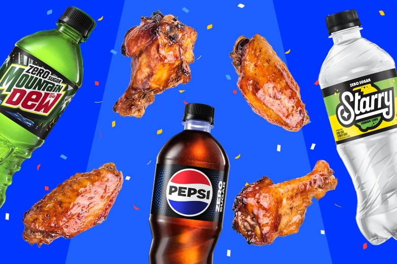 Branded, menu-highlighted sauces featuring PepsiCo beverages